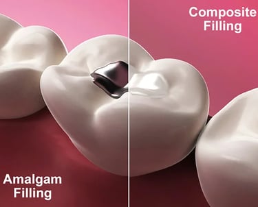Amalgam (Gümüş) Dolgu: Dayanıklıdır, genellikle arka dişlerde kullanılır.